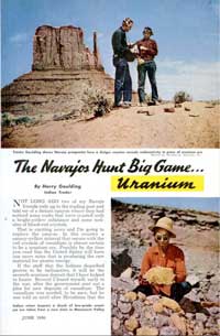 In June 1950, uranium pioneer Harry Goulding wrote an article for Popular Mechanics magazine (2MB PDF) promoting uranium mining on Native lands and nuclear energy. It stands as a fascinating historical document shedding light upon attitudes towards Navajos the future of atomic energy.